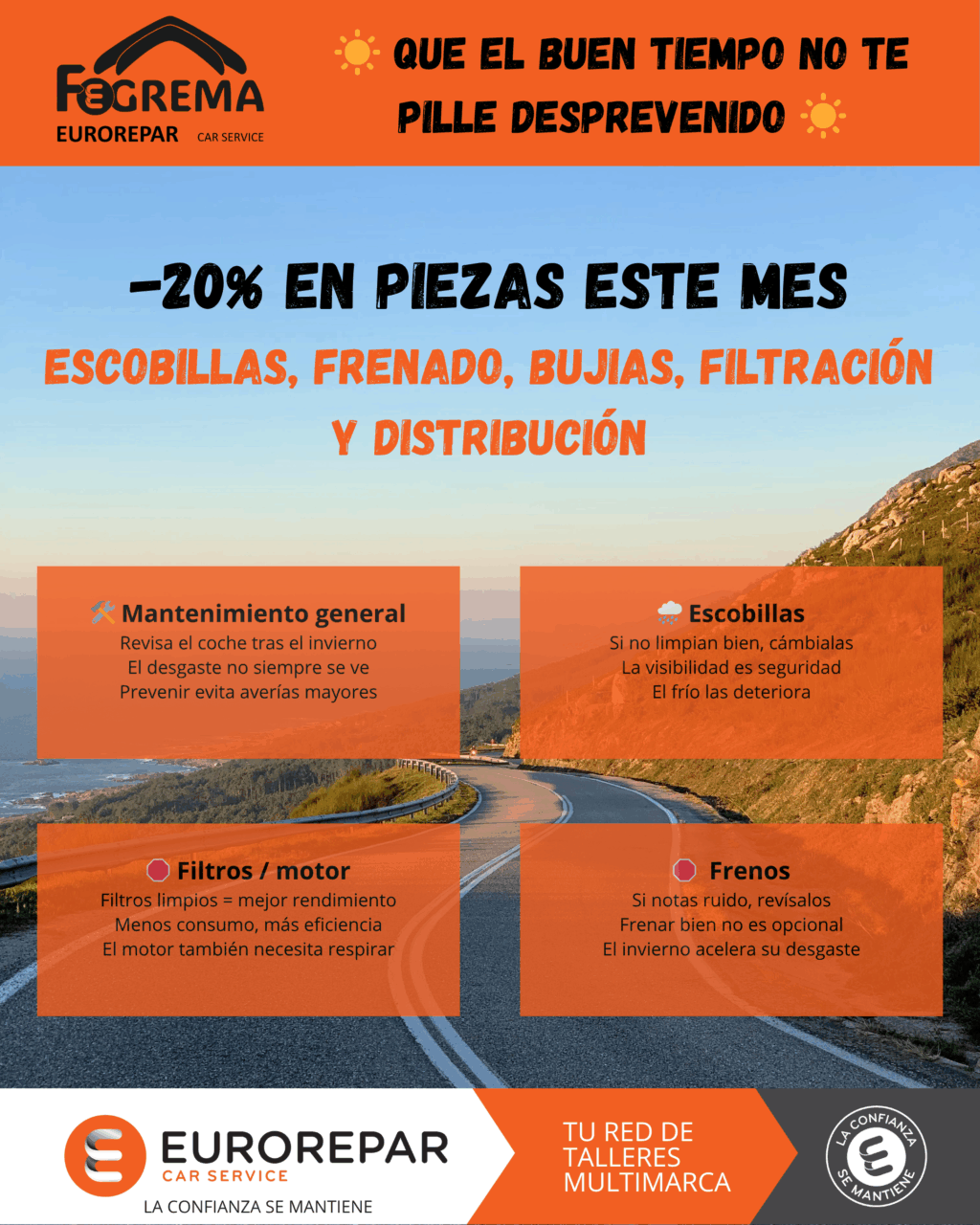 Para facilitar este mantenimiento, en Talleres Fegrema lanzamos nuestra campaña Operación Primavera, pensada para ayudarte a poner tu coche a punto tras el invierno.